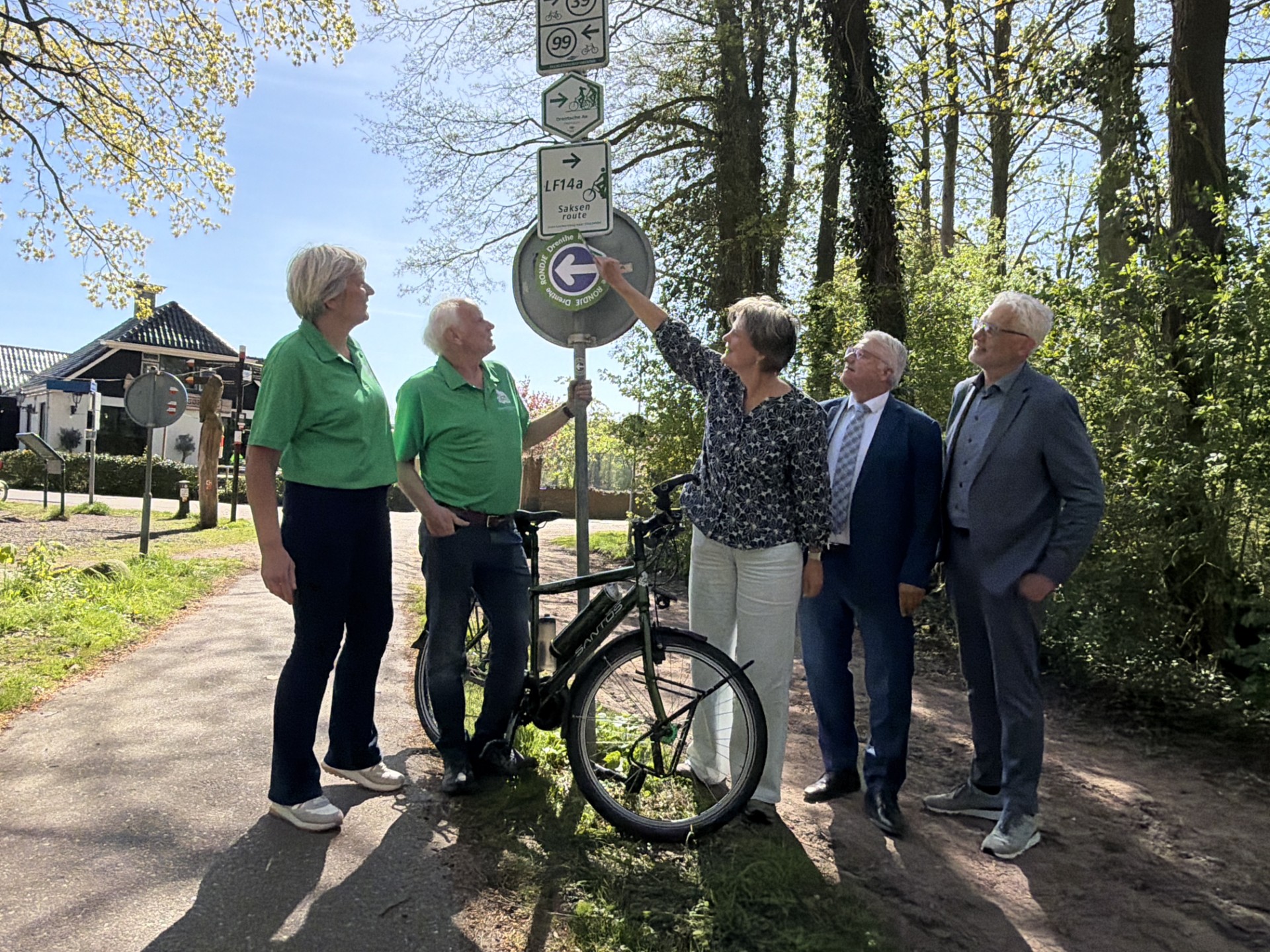 Op donderdag 23 april 2026 heeft gedeputeerde Willemien Meeuwissen de fietsroute Rondje Drenthe officieel geopend. De fietsroute langs de provinciegrenzen is verbeterd én volledig bewegwijzerd. Dit was een langgekoesterde wens van initiatiefnemers Erik en Hetty Luppes (Drentse Fietsers). De route is helemaal klaar voor het aankomende fietsseizoen.
