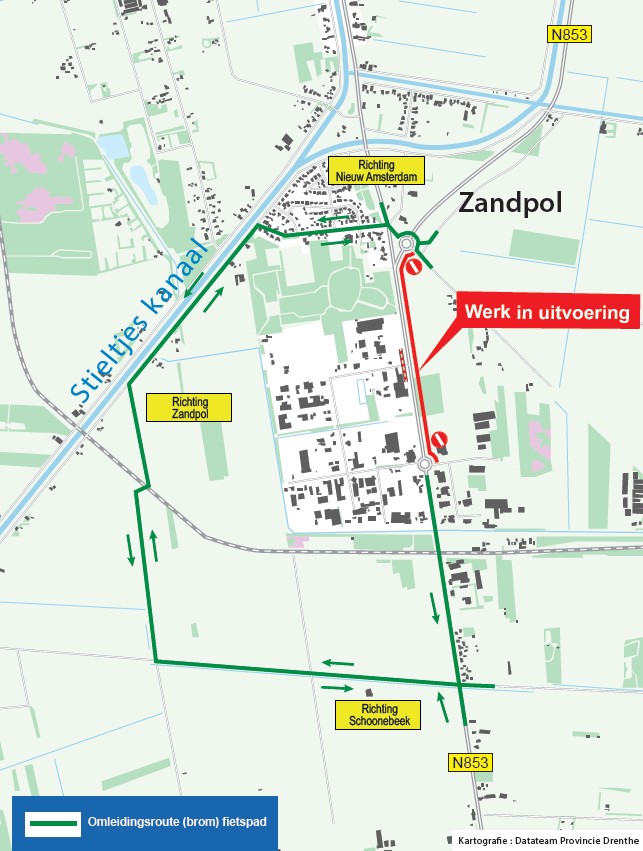 Fietspad langs de Nieuw-Amsterdamseweg (N853) tussen Zandpol en Schoonebeek afgesloten van 11 mei tot en met 3 juli 2026